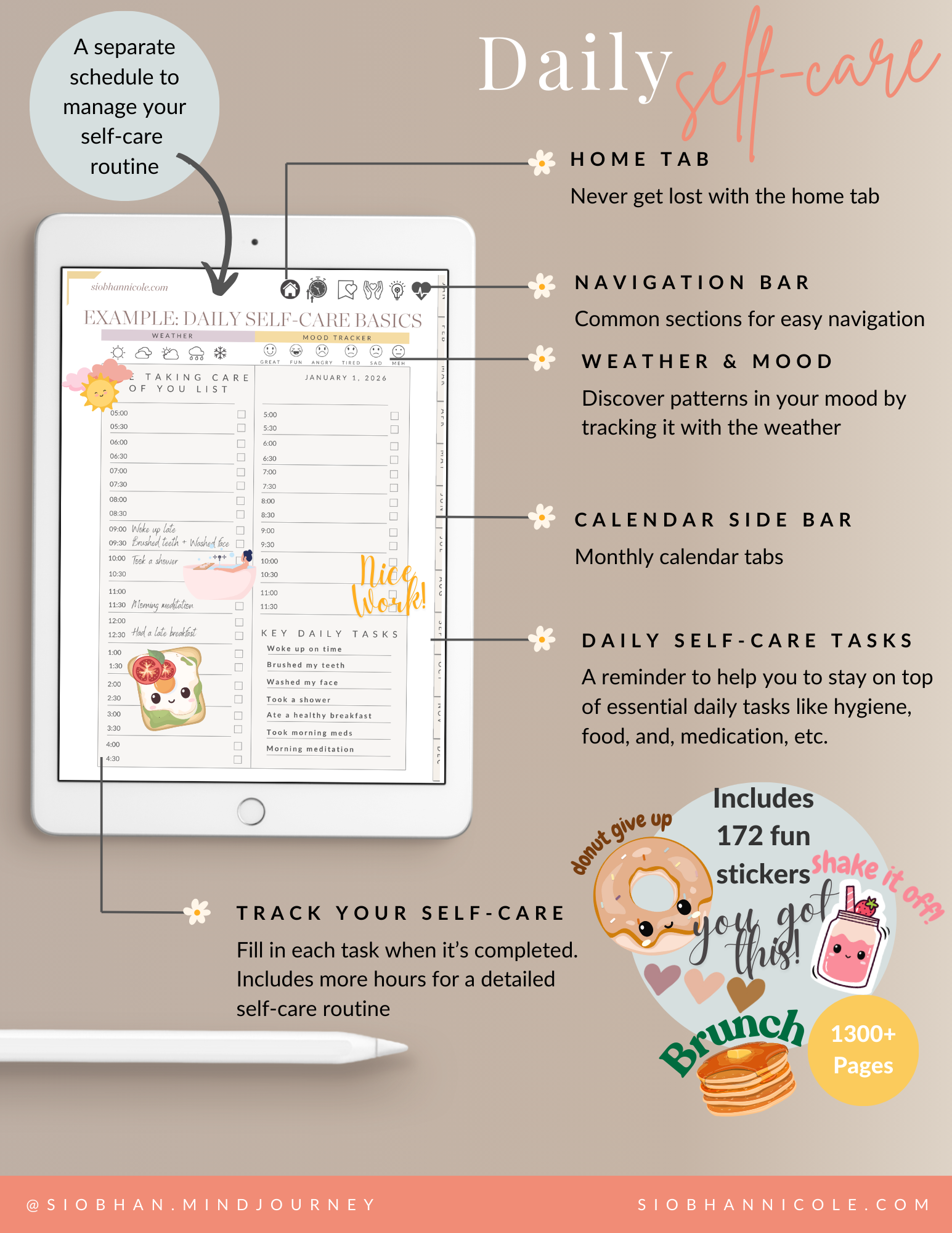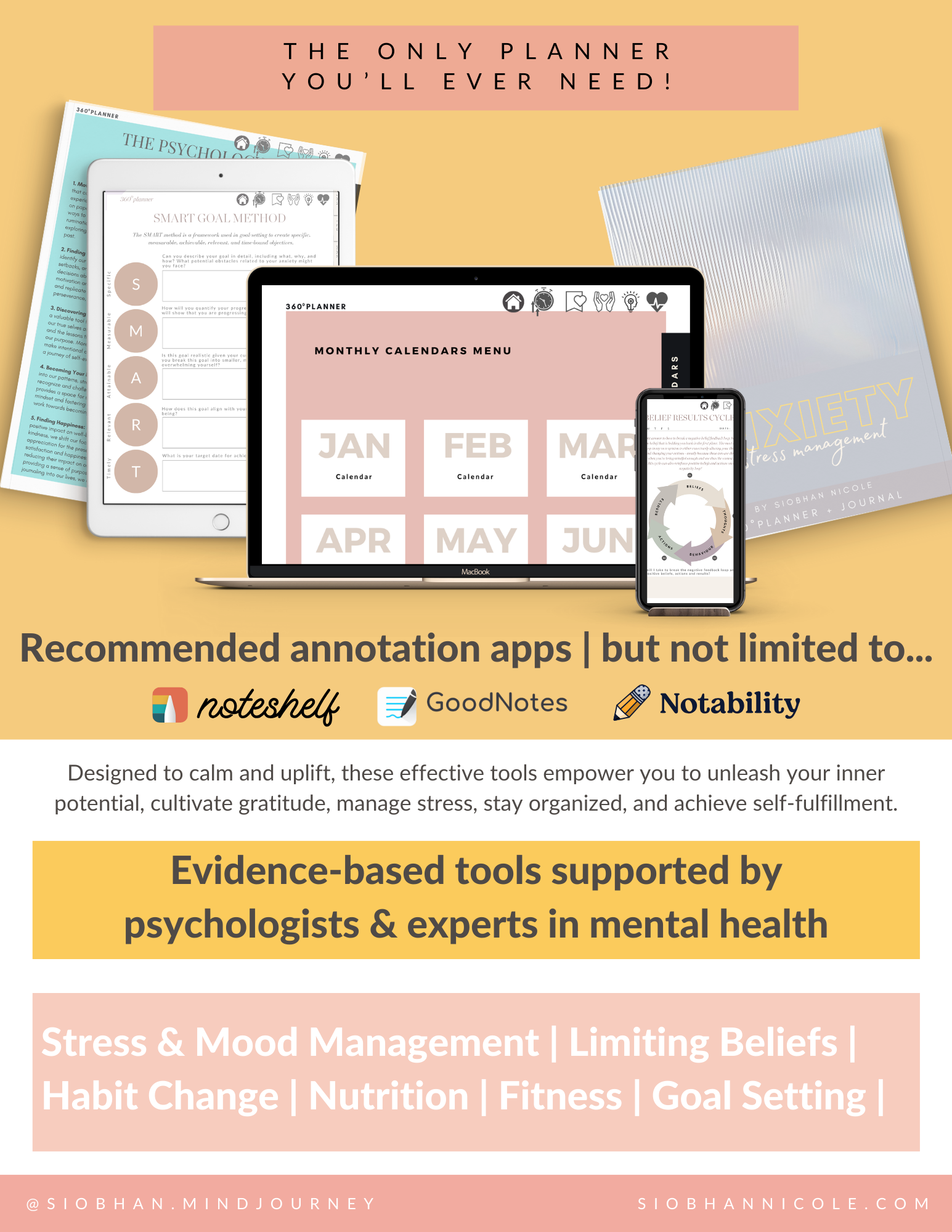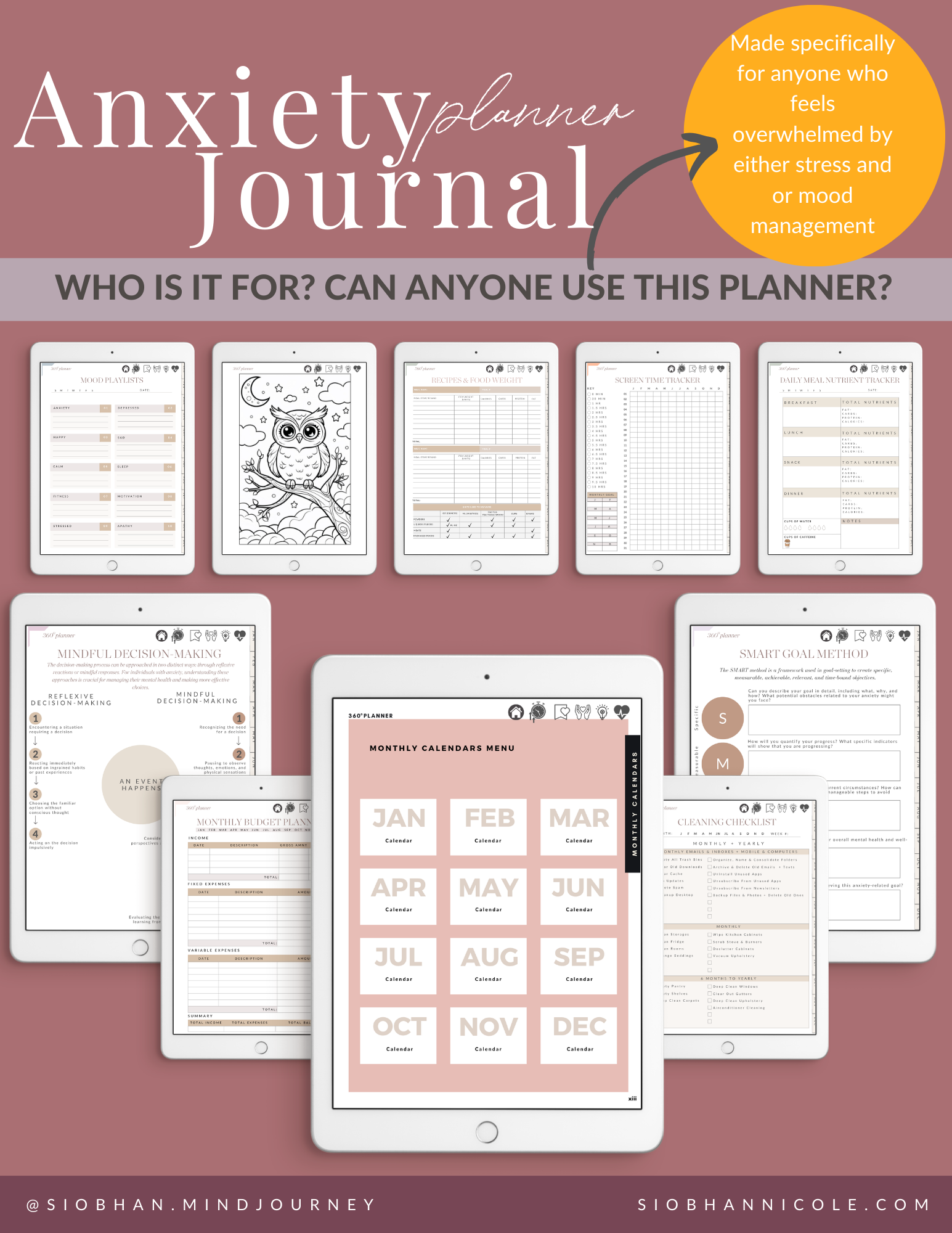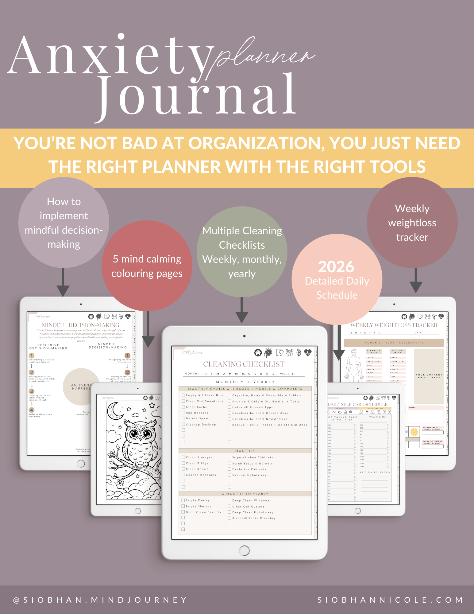 More than just a planner, our 2026 Anxiety Planner Journal is your all-in-one digital companion, combining structured calendars, deep journal prompts, and practical trackers for habits, mood, finances, and nutrition. Whether you’re looking to reduce anxiety, manage stress, or support your mental health journey with depression, this beautifully organized and interactive journal offers everything you need to cultivate greater clarity, balance, and wellbeing every day.